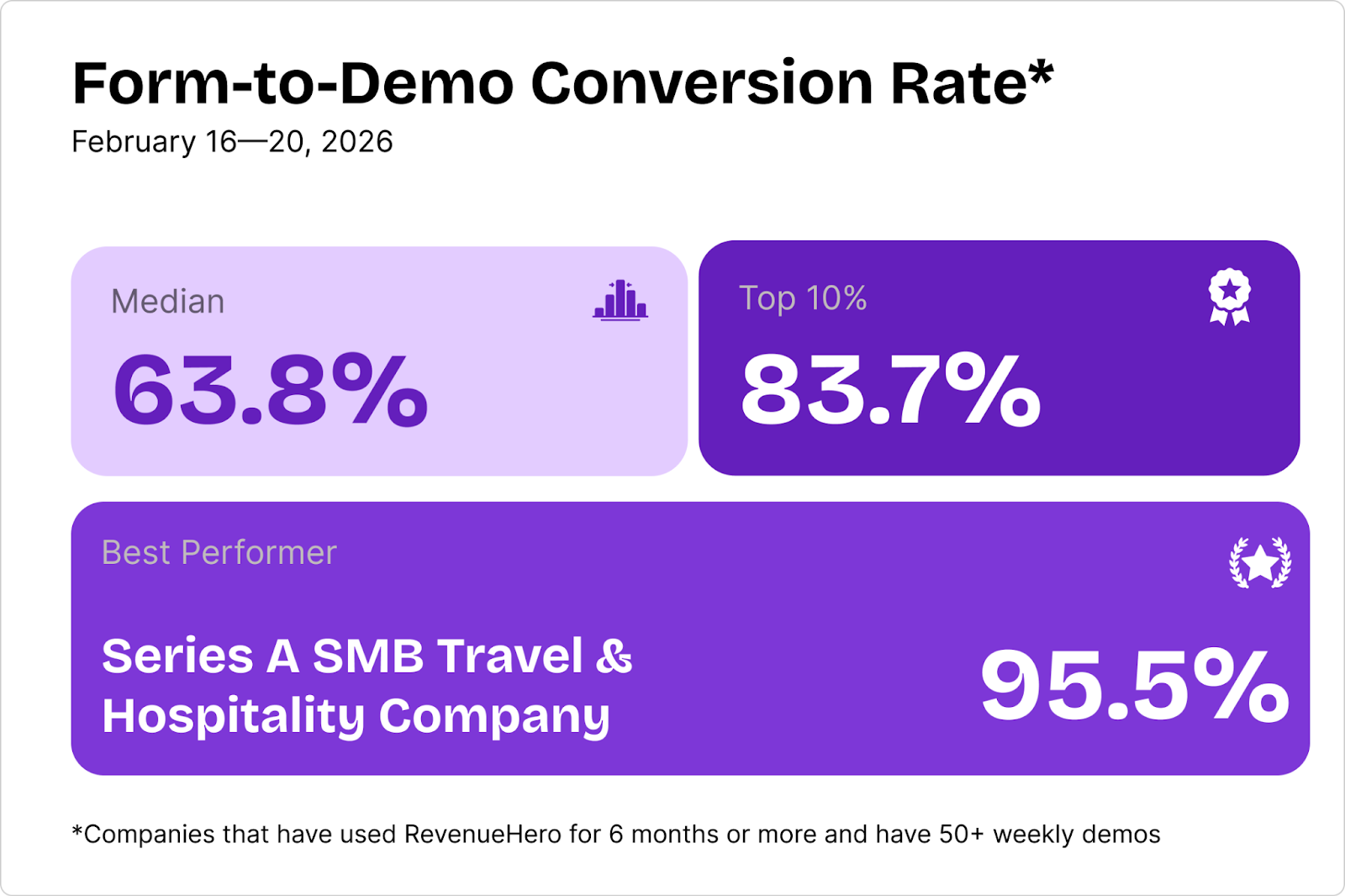RevenueHero’s T&H tech customers consistently hit above-average form-to-demo conversion rates in the past 4 weeks: