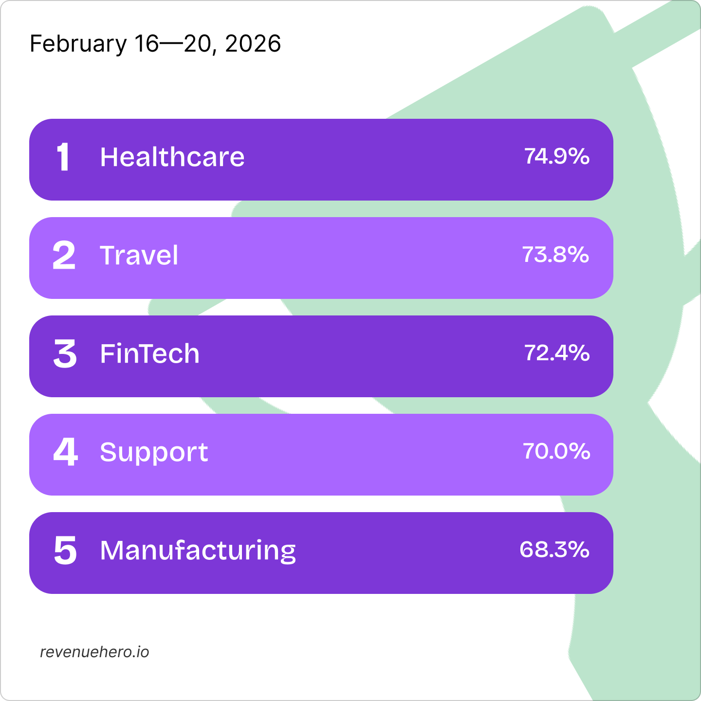 Across the board, all industries except developer tools and data & analytics converted 50%+ of their qualified inbounds, with 53% of industries holding steady or improving week-over-week, a sign of stabilization after volatility.