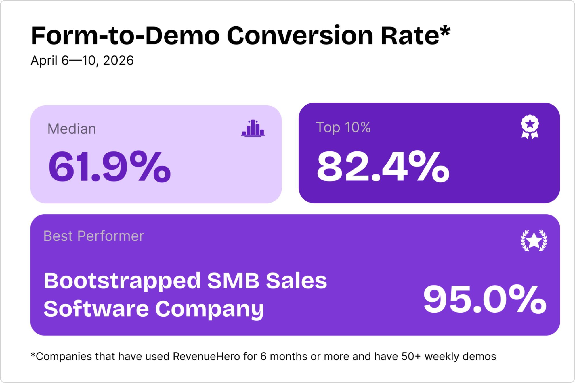 Our top 10% customers have held 70%+ form-to-demo conversion rates in at least 16 of the last 18 weeks. They continued to turn more handraisers into booked meetings, no matter how their industry was performing.