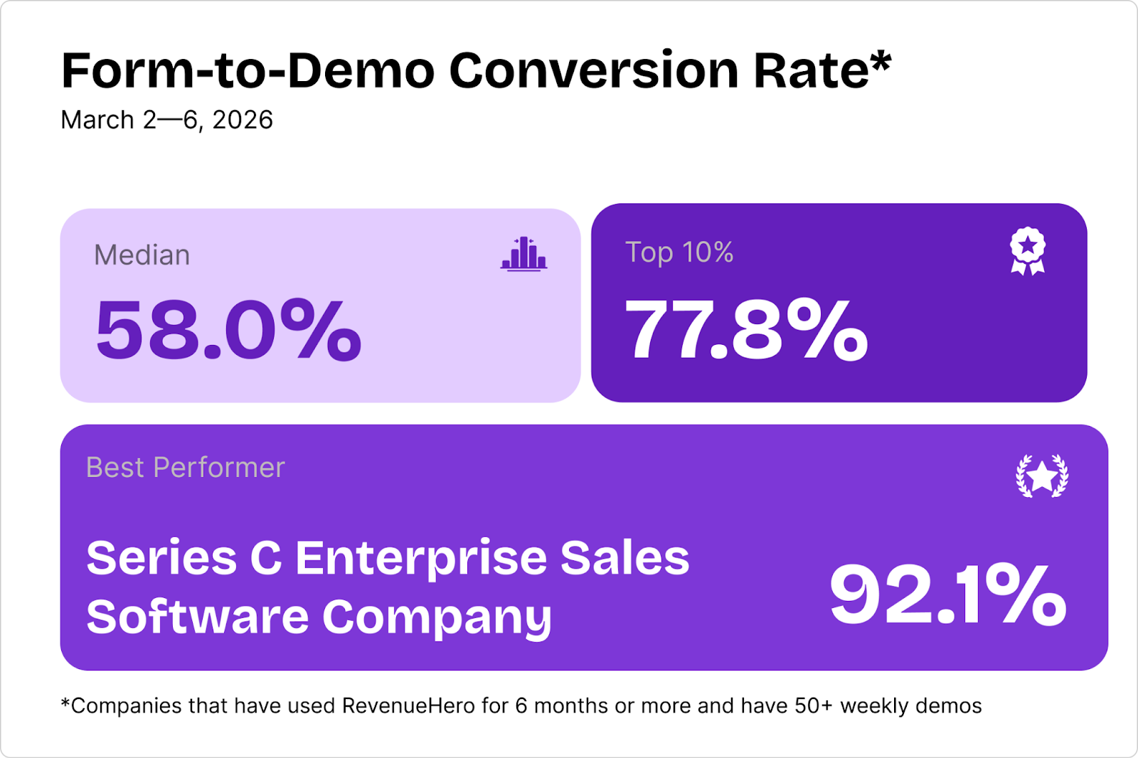On average, that was a 61.3% form fill to booked demo conversion across 16 industries, from bootstrapped SMBs to publicly traded enterprises.